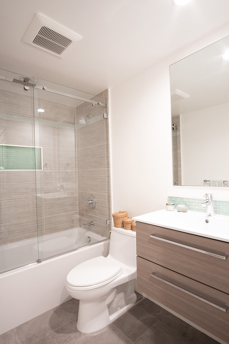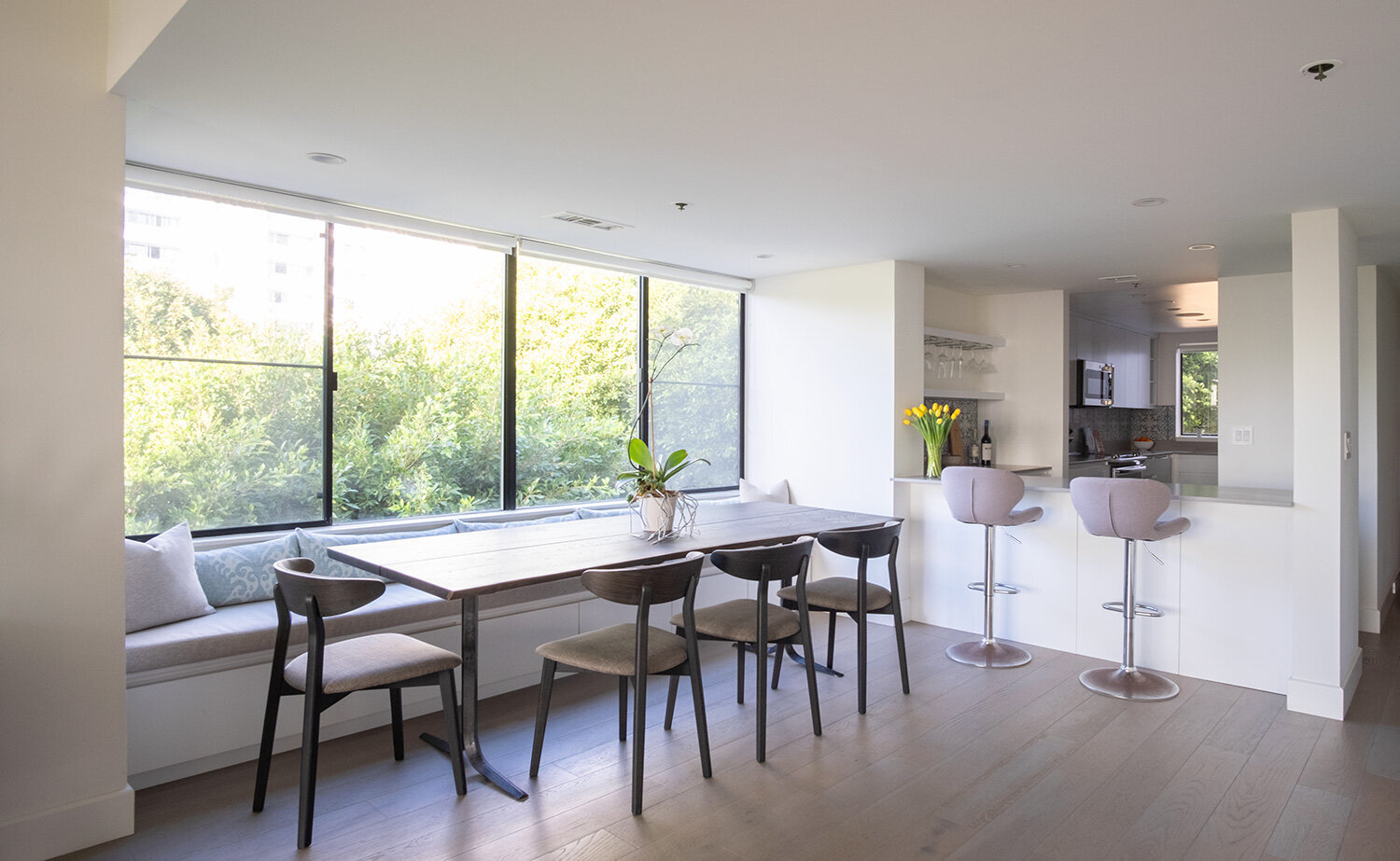 The Santa Monica Penthouse, a high-end residential project by Build Mackey, is a testament to our expertise in designing and executing contemporary spaces that exude elegance and functionality. The architecture and interior design of the penthouse showcase a blend of modern aesthetics and superior craftsmanship. We've used premium materials throughout, from the sleek countertops and decorative tiles in the kitchen to the wooden cabinetry and light fixtures in the bathrooms. The structure of the penthouse is designed to allow an abundance of natural light, creating a bright and airy atmosphere that enhances the minimalist design. Key features like the large dining area, decorative fireplace, and built-in bench with cushions provide a perfect balance of style and comfort.